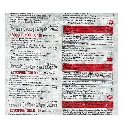 Ecosprin Gold 10 (Atorvastatin/Clopidogrel/Aspirin) |